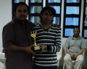 | Matheus recebendo premiação de Sílvio Cunha (e eu de gaiato na foto). |