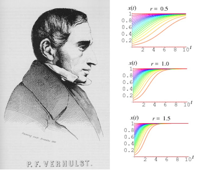 Com a pandemia do coronavírus atacando em escala global, temos que limitar nossa mobilidade sob pena de acelerar ainda mais o avanço do número de casos na população. Sem a diminuição da mobilidade o crescimento no número de doentes seria exponencial e o sistema de saúde não teria como dar conta. O número de mortos seria imenso aqui no Brasil (ou no mundo). Isso ocorre porque uma pessoa infectada pode transmitir o vírus mesmo estando assintomática, podendo contaminar várias pessoas, em poucos dias essas novas pessoas contaminadas passam a contaminas outras, e assim por diante. Isso causa o crescimento exponencial no número de casos, na verdade é um crescimento logístico. Existe uma diferença nem um pouco sutil entre eles: o crescimento exponencial, em princípio, não tem limite (pode ir ao infinito); já o crescimento logístico tem início semelhante a uma curva exponencial, mas é limitado a valor máximo e antes de atingir esse máximo a curva começa a crescer mais lentamente. Não se pode infectar mais pessoas do que o total da população, daí a limitação no máximo de infectados e a "transformação" da curva exponencial em uma curva logística. Aparentemente, foi Pierre-François Verhulst (1804–1849) o primeiro a encontrar essa curva quando estava estudando o crescimento populacional auto limitante. Existem várias outras aplicações em que a curva logística pode ser usada como modelo (ver aqui).